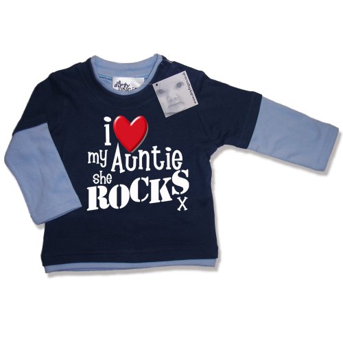 Dirty Fingers I Love my AUNTIE she Rocks x Baby & Toddler, Layered, Long Sleeve Skater T-shirt, 3-6 months, Blue/Pale Blue