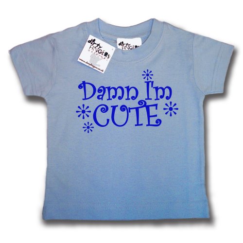 Dirty Fingers - Damn I'm Cute - Baby & Toddler T-shirt 6-12 months, Blue