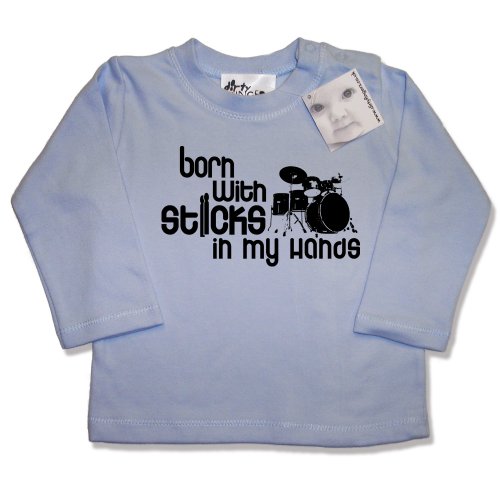 Dirty Fingers Born with Sticks in my hands, Drums Baby & Toddler, Long Sleeve Top, 12-18 months, Blue