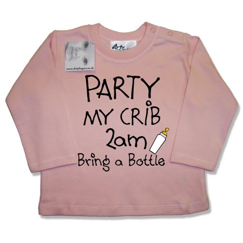 Dirty Fingers Party my crib 2am, Bring a Bottle Baby & Toddler, Long Sleeve Top, 6-12 months, Pink