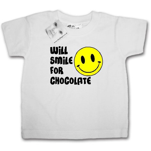 Dirty Fingers - Will Smile for Chocolate - Baby & Toddler T-shirt 12-18 months, White
