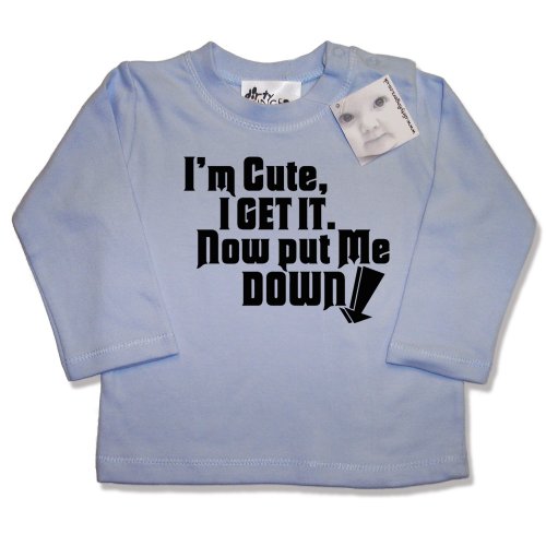 Dirty Fingers - I'm cute, I get it. Now put me Down. - Baby & Toddler, Long Sleeve Top, 12-18 months, Blue