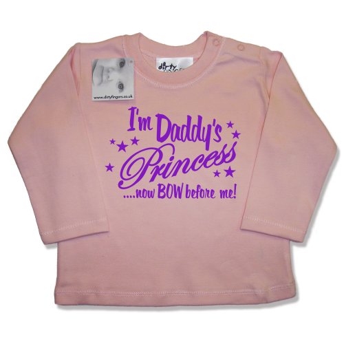 Dirty Fingers - I'm Daddy's Princess, now Bow before me! - Baby & Toddler, Long Sleeve Top, 12-18 months, Pink
