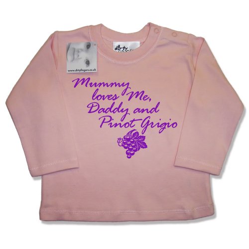 Dirty Fingers - Mummy loves Me, Daddy and Pinot Grigio - Baby & Toddler, Long Sleeve Top, 12-18 months, Pink