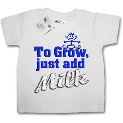Dirty Fingers - To Grow just add Milk (Boy Logo) - Baby & Toddler T-shirt 6-12 months, White