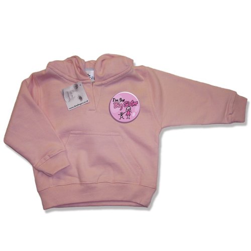 Dirty Fingers - Baby & Toddler Hooded Sweatshirt with a printed badge design on front - "I'm the Big Sister", 24-36 months, Pink
