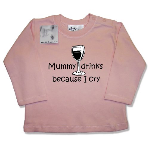 Dirty Fingers - Mummy drinks because I cry - Baby & Toddler, Long Sleeve Top, 6-12 months, Pink