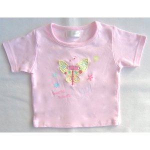 early days short sleeve butterfly pink top for 6 - 9 months baby girl, butterfly embroided, textured and floral print design to front, made of 100% cotton, soft, comfortable and in lovely colour. Clearing stock, last one, outstanding value.