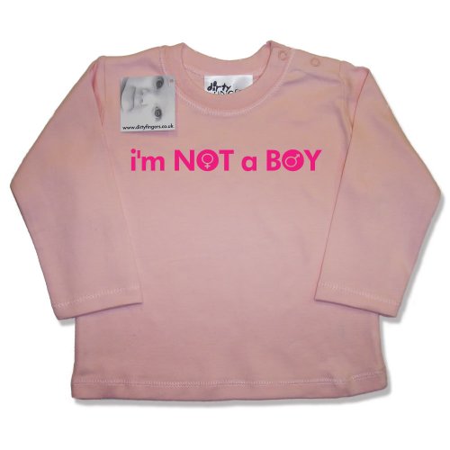 Dirty Fingers - I'm NOT a BOY - Baby & Toddler, Long Sleeve Top, 3-6 months, Pink