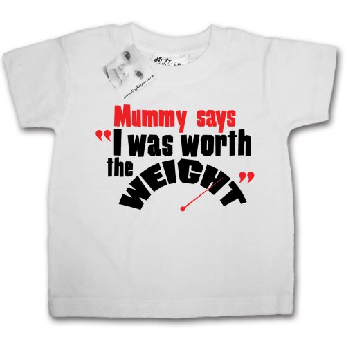 Dirty Fingers - Mummy says "I was worth the Weight" - Baby & Toddler T-shirt 12-18 months, White