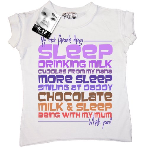 You can PERSONALISE this design with the 8 favourite things your baby or child may like or wish for. We will then lovingly print it on to one of our NEW Little Rocker Style - Inside-Out t-shirts. Each garment has twin ribbed, split collar and sleeves, cross stitching and free cut hems.