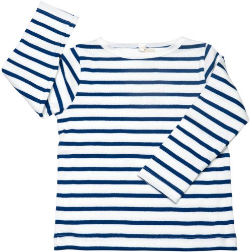 The classic mariniere with breton stripes in a nice blue colour. The top has a round collar and long sleeves, perfect for both girls and boys.