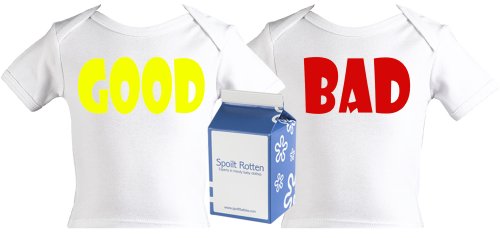 Spoilt Rotten - Good And Bad Twin Set Baby & Toddler Punk T-Shirt 100% Organic Sizes 3-4 years WHITE/BLACK + in funky Milk Carton