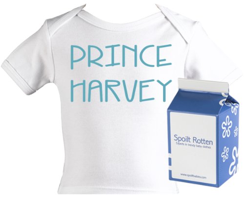 Spoilt Rotten - Prince CUSTOM Baby PERSONALISED Lap T-Shirt 100% Organic Sizes 2-3 years + in funky Milk Carton