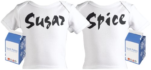 Spoilt Rotten - Sugar And Spice Twin Set Baby & Toddler Punk T-Shirt 100% Organic Sizes 3-4 years + in funky Milk Carton WHITE