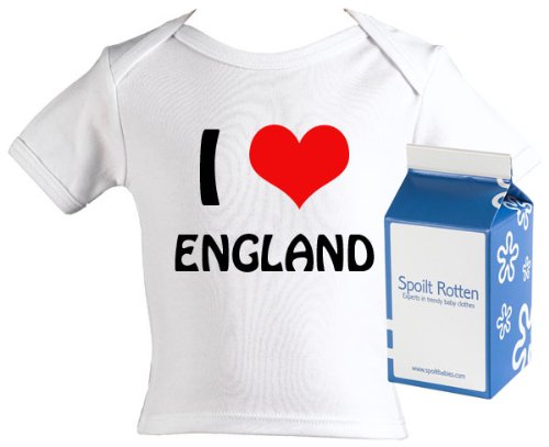 I LOVE ENGLAND World Cup Punk T-Shirt Sizes 2-3 years WHITE/BLACK + in funky Milk Carton