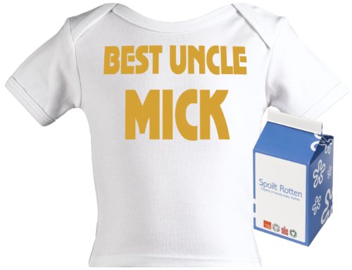 Spoilt Rotten - Best Uncle CUSTOM Baby PERSONALISED Lap T-Shirt 100% Organic Sizes 3-4 years + in funky Milk Carton WHITE