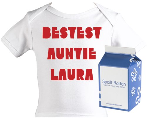 Spoilt Rotten - Bestest Auntie CUSTOM Baby PERSONALISED Lap T-Shirt 100% Organic Sizes 2-3 years + in funky Milk Carton