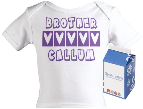 Spoilt Rotten - Brother CUSTOM Baby PERSONALISED Lap T-Shirt 100% Organic Sizes 3-4 years + in funky Milk Carton WHITE