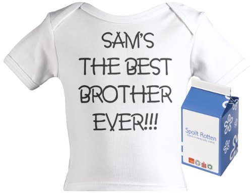 Spoilt Rotten - CUSTOM The Best Brother Ever!!! Baby PERSONALISED Lap T-Shirt 100% Organic Sizes 3-4 years + in funky Milk Carton WHITE
