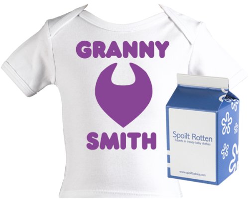 Spoilt Rotten - Granny CUSTOM Baby PERSONALISED Lap T-Shirt 100% Organic Sizes 2-3 years + in funky Milk Carton