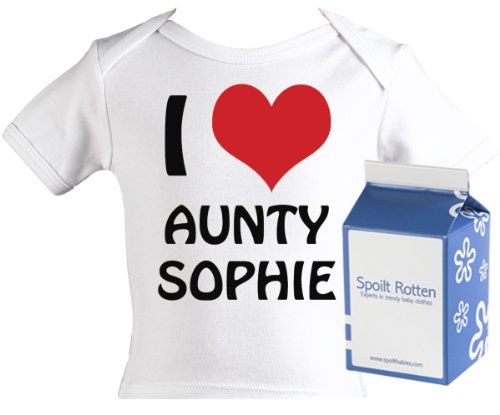 Spoilt Rotten - I Love Aunty CUSTOM Baby PERSONALISED Lap T-Shirt 100% Organic Sizes 2-3 years + in funky Milk Carton
