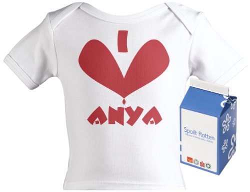 Spoilt Rotten - I Love CUSTOM Baby PERSONALISED Lap T-Shirt 100% Organic Sizes 3-4 years + in funky Milk Carton WHITE