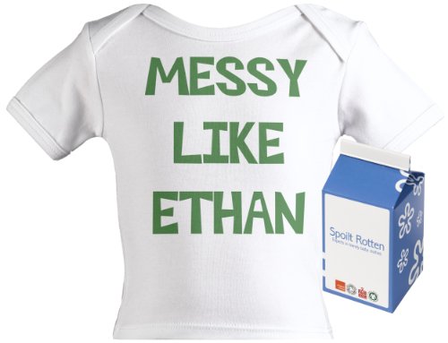 Spoilt Rotten - Messy Like CUSTOM Baby PERSONALISED Lap T-Shirt 100% Organic Sizes 3-4 years + in funky Milk Carton WHITE