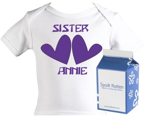 Spoilt Rotten - Sister CUSTOM Baby PERSONALISED Lap T-Shirt 100% Organic Sizes 2-3 years + in funky Milk Carton