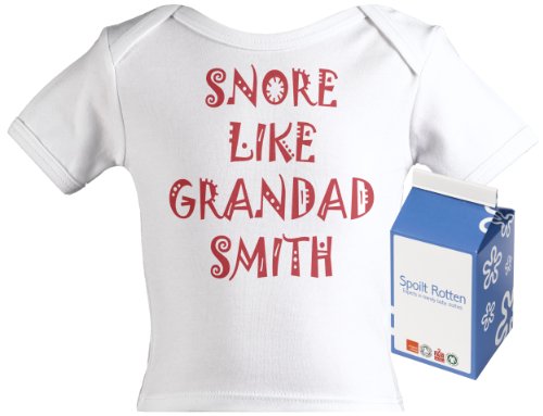 Spoilt Rotten - Snore Like Grandad CUSTOM Baby PERSONALISED Lap T-Shirt 100% Organic Sizes 3-4 years + in funky Milk Carton WHITE